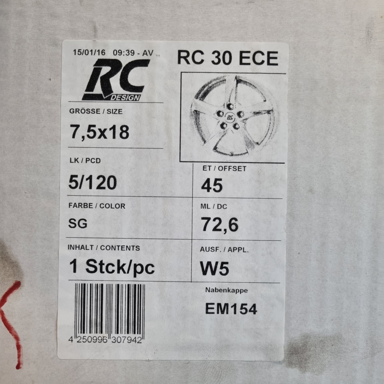 | Šírka disku | 7.5J |